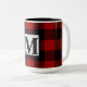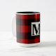 Monogram Initial on Red and Black Buffalo Plaid Two-Tone Coffee Mug