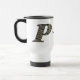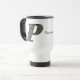Elegant monogram letter P filled with delicate white hydrangea flowers personalized travel coffee or tea mug. Click on Customize to add text. Great gift idea. This image is available on many products in my gallery.