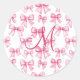 Monogram Initial Pink Bow Coquette Aesthetic Gift Classic Round Sticker