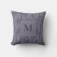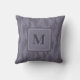 Add your own initial to this unique throw pillow. It features a monogram letter inside a layered box over a leaf pattern. In shades of plum, purple, lavender, and violet.