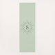 Elegant yoga mat with your monogram initial inside a border of radial dots resembling a sun on light sage green background. Colours can be customised with the design tool.