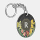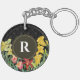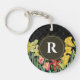 Monogram Initial Spring Flowers Damask Background Key Ring