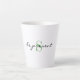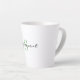 Modern 12oz latte mug featuring 'be present' in a stylish script with leaf green monogram initial. Easily change text and initial to make it yours using the Template provided. Available in 12oz and 17oz capacity. See "About This Product" at side for more information.