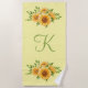 Monogram Initial Sunflowers Yellow Beach Towel