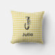 Monogram initial watercolor flower gingham pattern Throw Pillow . Letter J