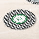 Classic black & white houndstooth pattern with forest green double framed skinny initials decorate these round paper coasters. Easily change the stylish initials using the Template provided. These paper coasters are 4" diameter, made of 50 pt. pulp board and printed in vibrant full colour. Your choice of 10 different coaster shapes. Sold as sets of 6. See "About This Product" at side for more information and care.