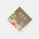 Monogram Initials Date Watercolor Flowers Burlap Napkin