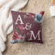 Monogram Initials Dusty Rose Blue Floral Burgundy Cushion
