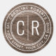 Elegant return address label with your custom monogram initials and your return address in a modern sans-serif font on a brown, oak wood background.