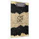 Monogram Initials on Black and Gold Glitter Clipboard