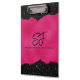 Monogram Initials on Luxurious Black and Hot Pink Clipboard