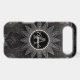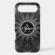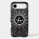 A detailed black and white mandala design with floral elements, creating a mesmerising and symmetrical pattern. The intricate linework and shading give the image a sense of depth and complexity.