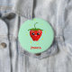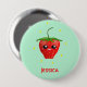 Monogram kawaii strawberry fruit on turquoise 10 cm round badge