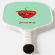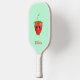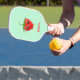 Monogram kawaii strawberry fruit on turquoise pickleball paddle
