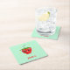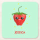 Monogram kawaii strawberry fruit on turquoise square paper coaster