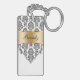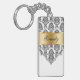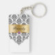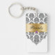 Monogram with pretty black and white damask pattern gold monogram emblem that includes a printed purple diamond jewel. Personalise with any name, initials, or message as a gift or party favour. Designed as keychains for women or keychains for girls, in a fun two side acrylic keychain. Lets you carry your keys in style.