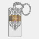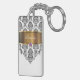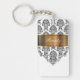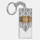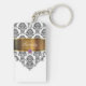 Monogram with pretty black and white damask pattern gold monogram emblem that includes a printed purple diamond jewel. Personalise with any name, initials, or message as a gift or party favour. Designed as keychains for women or keychains for girls, in a fun two side acrylic keychain. Lets you carry your keys in style.