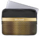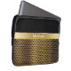 Men's monogram laptop sleeve with simulated gold metal grill pattern printed on the cover, monogram space you can personalise with your name or initials, and background colour you can change to your liking. Designed for men or boys.