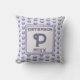This monogram pillow is a great way to add a colourful accent in your home or create a special keepsake for a wedding or housewarming. A blue grey polka dot pattern appears against a light blue background on both the front and back of this pillow. The letter "P" is featured in a square along with the family name and year. The letter, year, and your name can quickly and easily be personalised.