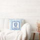 This monogram pillow is a great way to add a colourful accent in your home or create a special keepsake for a wedding or housewarming. A bright blue polka dot pattern appears against a white background on both the front and back of this pillow. The letter "Q" is featured in a square along with the family name. The letter and your name can quickly and easily be personalised.