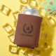 Monogram Laurel Wreath Brown Faux Leather Can Cooler
