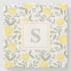 A chic personalised monogram stone coaster with lemons and leaves pattern. Perfect for a sunny tropical bright yellow toned kitchen interior and decors.