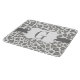 Chic, modern, pretty wild animal big cats leopard print glass cutting board in white and grey featuring a grey stripe and white edged with grey banner you can customise with your monogram initial!