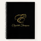 Monogram Letter E Horse Notebook template in gold glitter ideal for horse care, horse training, veterinarian services.