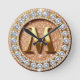 Monogram Letter M on Rose Gold Glitter Background Round Clock