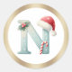 This design features a watercolor illustration of letter N with Santa hat, holly and candy cane.