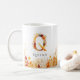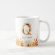 Elegant watercolor leaves frame the bottom of this mug while the letter Q is a collage of festive fall element of red orange and yellow leaves, Personalise with a name to make it uniquely yours.