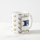 This monogram morning tea or coffee mug is a great way to add a personalise touch to your morning routine. A golden polka dot pattern appears against a white background on both sides of this mug. The letter "R" is featured in a square. The letter can not be customised however if you are looking for another letter, please visit my store.