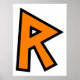 Simple block monogram capital letter R in orange and black. Customise and choose your own background colour. Image available on various gifts and products.