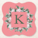 Monogram Letter Square Floral Frame Paper Coaster