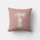 Monogram Letter T pink floral roses pillow