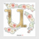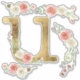 Monogram Letter U Pink Rose Floral Leaf Watercolor