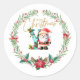 This charming Christmas sticker features a delightful illustration of Santa Claus with an initial alphabet within a Christmas wreath, capturing the essence of the holiday season. The design showcases Santa in his iconic red suit, complete with a fluffy white beard and warm smile, surrounded by festive elements. Adorned with a festive Christmas label, this sticker serves as the perfect greeting for friends and family.