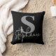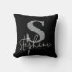 Monogram Lettered Script Silver Black Throw Pillow