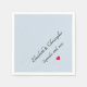 Create your own custom, personalised, elegant black typography / calligraphy / script / font on light dusty blue background, bride groom / couple names, wedding / anniversary date, red heart, your choice of white or ecru coloured, coined or standard style, food contact safe, party celebration cocktail luncheon dinner paper napkins that look good tucked in the collar or draped over your lap. Simply type in the bride and groom's or wife and husband's names, and the wedding date, to customise. Elegant, classy paper napkins, perfect for wedding reception, anniversary celebrations, engagement party, and more.