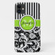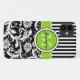 Monogrammed modern and trendy medium lime green, black, and white stripes with damask Case-Mate iPhone 11 Case.