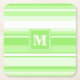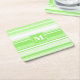 Monogram lime green stripes square paper coaster