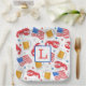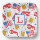 These preppy monogram patriotic party plates add a festive touch to your party. Personalise with an initial. The lobster, beer, flag and star patriotic pattern can be found on many items in my shop, PageCreativeDesigns.