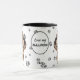 This mug for the Bulldog owner features a portrait of a beautiful brown and white Bulldog. The image is printed twice, and between them is an oval with the black text that says "Love my French Bulldog". Your monogram or name is at the bottom. The oval, monogram, and dog images are placed on a background sprinkled with paw prints. You may easily change the text to something else if you'd like.