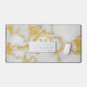 Elegant White & Gold Marble Pattern Customised Monogram M Desk Mat.
