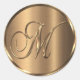 Monogram M NONMETALLIC Bronze classic round sticker. Seal envelopes or wedding favour gifts with these printed faux BRONZE monograms. These are not embossed monograms or beveled monograms and they are printed with non metallic inks on a flat sheet of stickers available in two sizes. In addition to being pretty wedding stationery supplies, these elegant wedding invitation envelope seals also make great monogrammed custom Christmas card seals, personalised holiday greeting card envelope seal stickers and customised Xmas card monogram seal stickers.