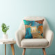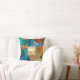 A sparkly, faux gold foil square with a script typography monogram initial overlays a rich, gold veined, turquoise blue, and yellow orange watercolor background on this elegant, trendy, girly, modern, monogramed throw pillow. Makes a fun and stylish statement every time you relax on it. A great addition to your living room or bedroom, as well as a wonderful gift for a friend!