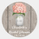 Monogram Mason Jar Coral Hydrangea Bridal Shower Classic Round Sticker