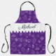 Monogram Christmas apron - Merry Christmas and Happy New Year 20XX! XMAS Christmas Custom Apron decorated with Winter Holiday Symbols pattern, reindeer, snowflakes, snowman, santa, snow, christmas tree, christmas balls, stars decorative rustic ornament. Original trendy graphic design. Home > Kitchen & Dining > Table & Kitchen Linens > Aprons . Gifts Presents Winter Holiday Decoration. Apron Design with text template. Personalise them by adding name.