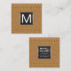 Monogram Metal Trim | Double Stitched Tan Leather Square Business Card