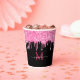 Monogram Metallic Hot Pink Dripping Glitter Black Paper Cups